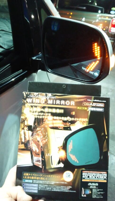 純正のドアミラーはメッキカバータイプですが、こちらの商品でカラードカバーに交換することでよりスタイリッシュになりますし、点灯がとてもかっこよくておススメです!